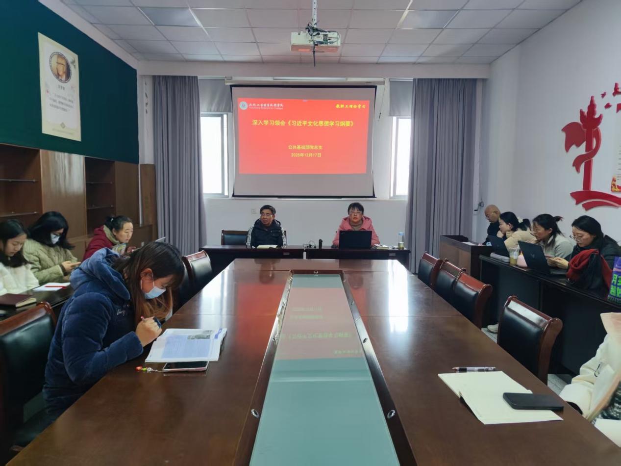 12月17日下午,公共基础部召开专题学习会,集中学习《习近平文化思想学习纲要》。部门全体教师参加学习。